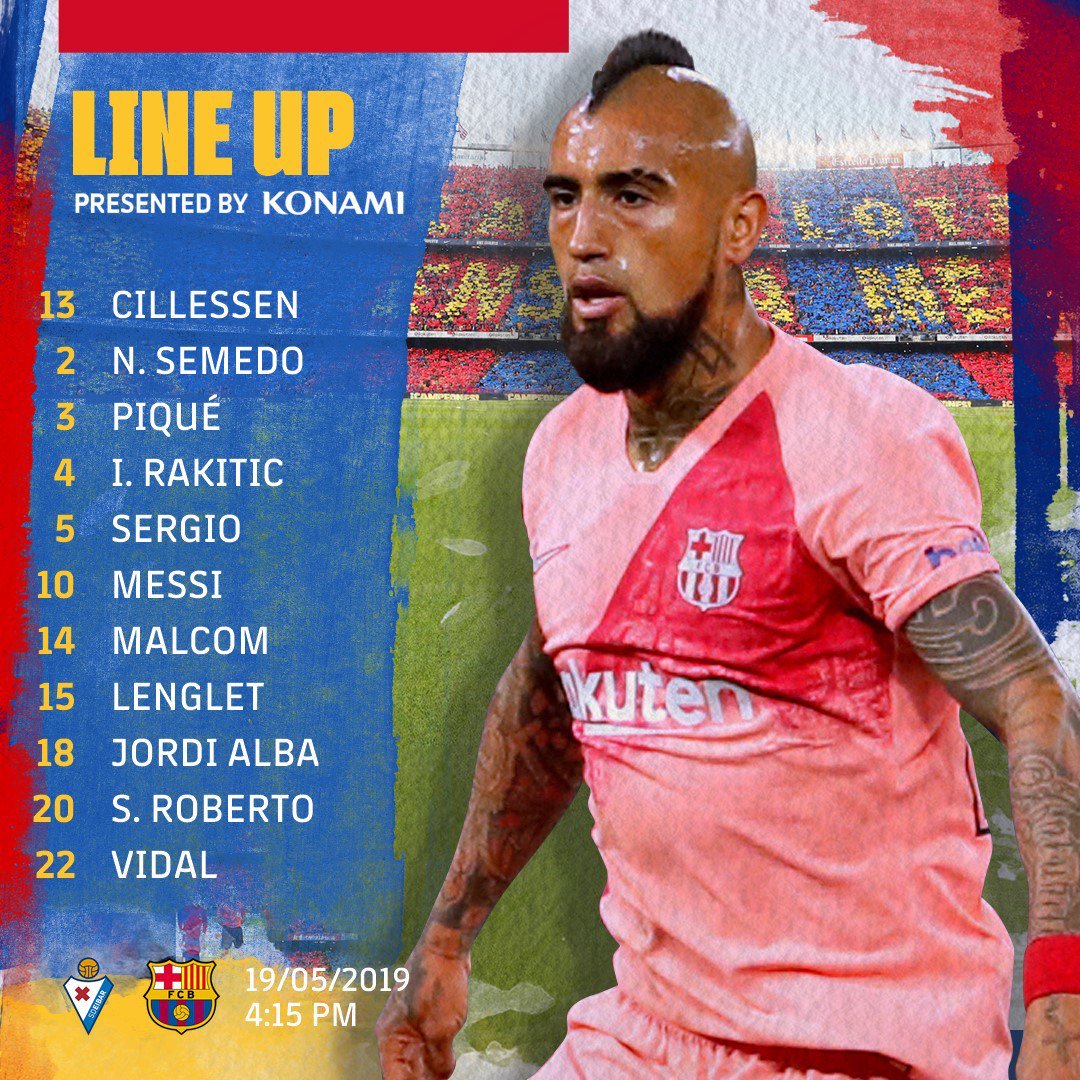 Ernesto Valverde kijelölte 19 fős keretét a szezon utolsó bajnoki mérkőzésére. Sérülés okán ter Stegen, Rafinha, Arthur, Coutinho, Dembélé és Boateng, valamint technikai döntés miatt Murillo a kimaradók névsora. A B csapat játékosai közül Iñaki Peña, Wagué, Riqui Puig, Carles Pérez és Abel Ruiz nevét is tartalmazza a lista.
