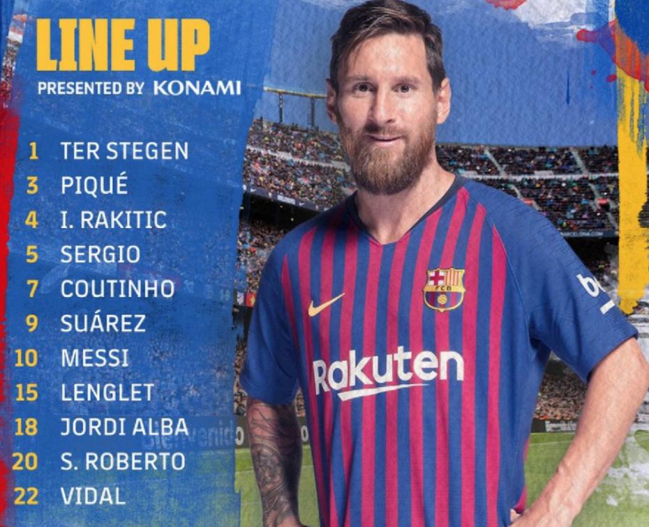 Ernesto Valverde a mai napon a ter Stegen - Sergi Roberto, Piqué, Lenglet, Jordi Alba - Rakitic, Busquets, Vidal - Messi, Suárez, Coutinho tizenegynek szavazott bizalmat.